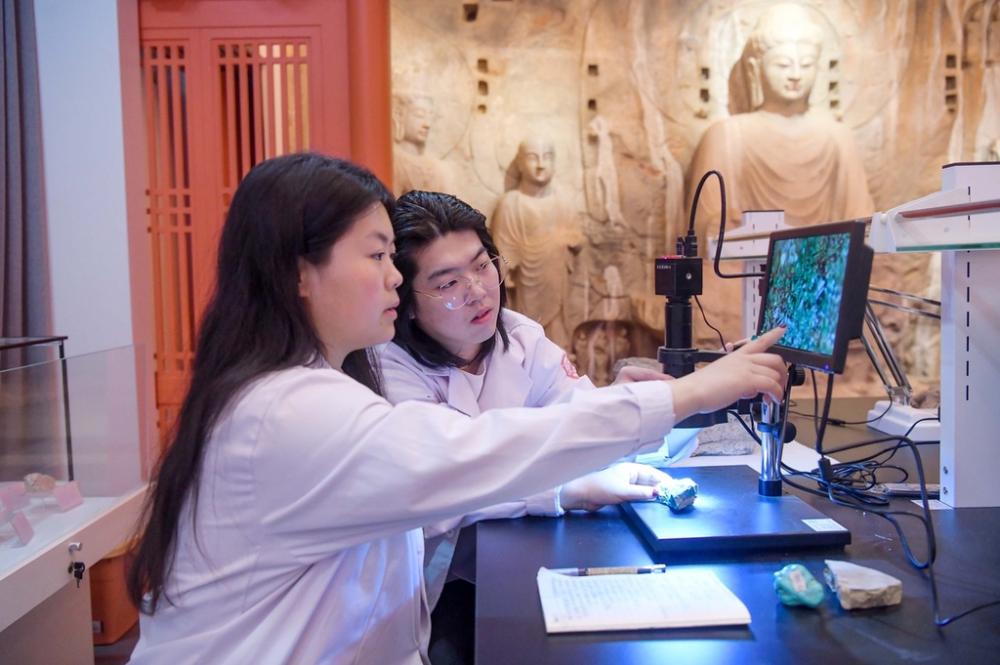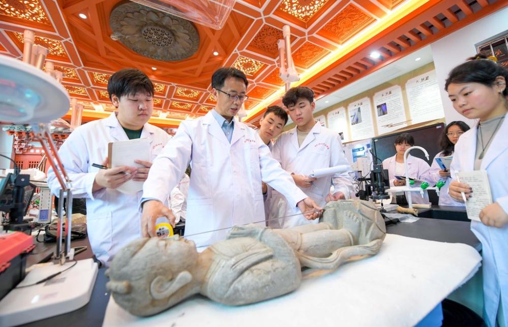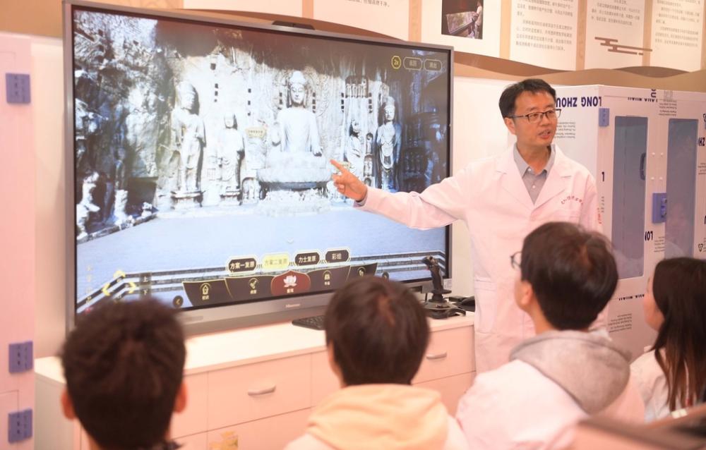Στο τμήμα προστασίας πολιτιστικών κειμηλίων και αρχαιολογίας του Ινστιτούτου Επαγγελματικής Τεχνολογίας του Λουογιάνγκ της επαρχίας Χενάν, οι σπουδαστές παρακολουθούν μαθήματα στην πρώτη αίθουσα τεχνολογικής εκπαίδευσης για την προστασία και την αποκατάσταση των ναών των βράχων της Κίνας.