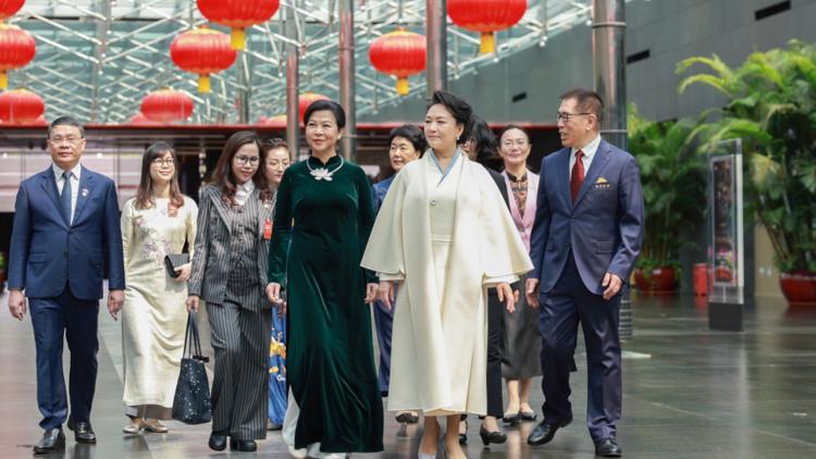 Η Πενγκ Λιγιουάν και η πρώτη κυρία του Βιετνάμ επισκέπτονται το Εθνικό Κέντρο Παραστατικών Τεχνών της Κίνας