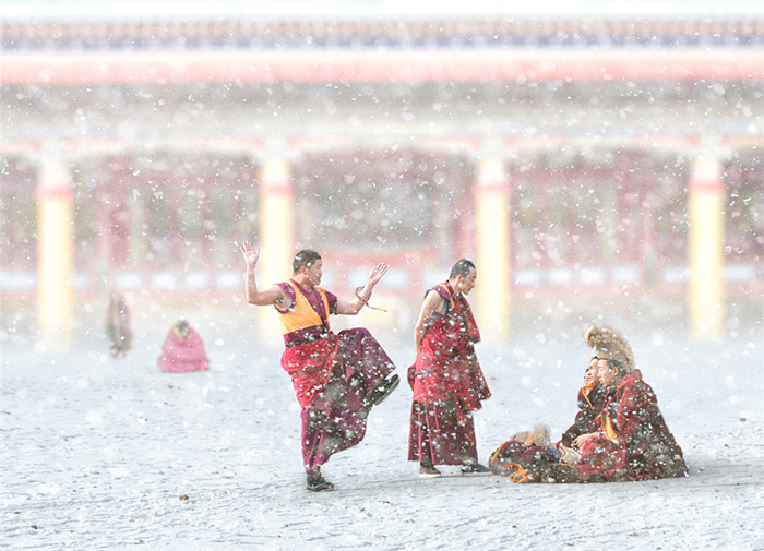 Μοναχοί συγκεντρώνονται για την ψαλμωδία των ιερών κειμένων. [Φωτογραφία από τον Χου Γκουοτσίνγκ/photoint.net]