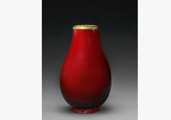 Το κόκκινο βάζο λουλουδιού από το εργαστήριο Λανγκ (Lang-kiln Red Glaze) παρουσιάζεται στο κοινό για πρώτη φορά. (Πηγή: China.org.cn/ Μουσείο Πρωτεύουσας)