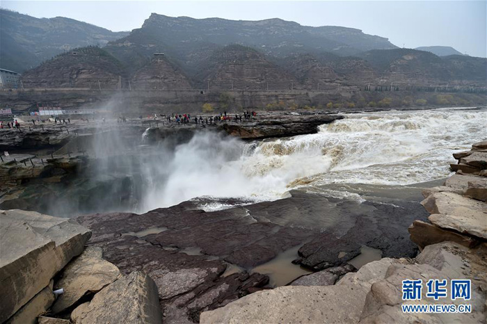 Ο καταρράκτης Χουκόου βλέπει τεράστιες ροές νερού λόγω των έντονων βροχοπτώσεων αντίθετα προς τη ροή του Κίτρινου Ποταμού στην Τζισιάν, επαρχία Σανσί της βόρειας Κίνας, στις 16 Νοεμβρίου, 2015. Είναι ο μεγαλύτερος καταρράκτης στον Κίτρινο Ποταμό. [Φωτογραφία: Xinhua]