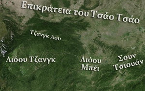 Ώσο για την περιοχή Χαντζόνγκ, ο Τζανγκ Λου το 215 παραδόθηκε στον Τσάο Τσάο και το 217 ο Λιόου Μπέι ήρθε να ανταγωνιστεί με τον Τσάο Τσάο για την ιδιοκτησία της Χαντζόνγκ. Οι δύο εχθροί συναντήθηκαν ξανά και για την τελευταία φορά. Ο πόλεμος κράτησε δύο χρόνια έχοντας ως αποτέλεσμα την ήττα του Τσάο Τσάο.