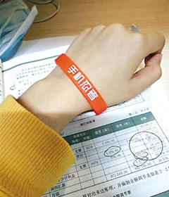 Βραχιόλι για τη μη χρήση κινητού στην τάξη. (Φωτογραφία / Weibo)