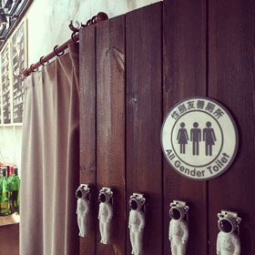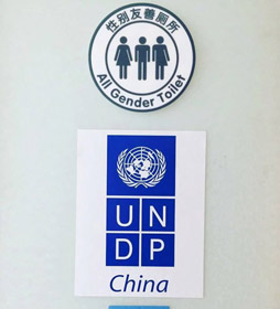 Μερικά μπαρ στο Γκουλόου στην περιοχή Ντονγκτσένγκ του Πεκίνου έχουν θέσει τις πινακίδες τουαλετών όλων φύλων που χαρακτηρίζονται από ένα σχέδιο μισό άνδρας – μισό γυναίκα ακριβώς δίπλα από εκείνα ενός άνδρα και μιας γυναίκας. Τα γραφεία Γυναικών του ΟΗΕ και του Προγράμματος Ανάπτυξης του ΟΗΕ στο Πεκίνο έχουν επίσης θέσει τις νέες πινακίδες.